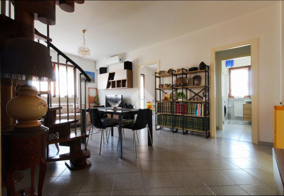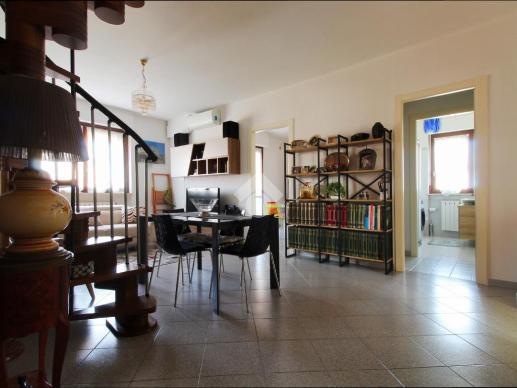 L'immobile è caratterizzato da un'ottima distribuzione degli spazi, si sviluppa su due livelli: al piano principale ingresso su accogliente soggiorno, cucina abitabile luminosa, camera da letto matrimoniale, cameretta e doppi servizi finestrati; tramite scala interna accediamo al piano sottotetto con un ampio locale open space, rifinito e versatile. Questo spazio extra è ideale per essere adibito a studio per lo smart working, sala relax, area giochi o stanza per gli hobby; inoltre, vi è la possibilità di accedere al piano superiore tramite la scala condominiale, qualora servisse uno spazio autonomo ed indipendente.